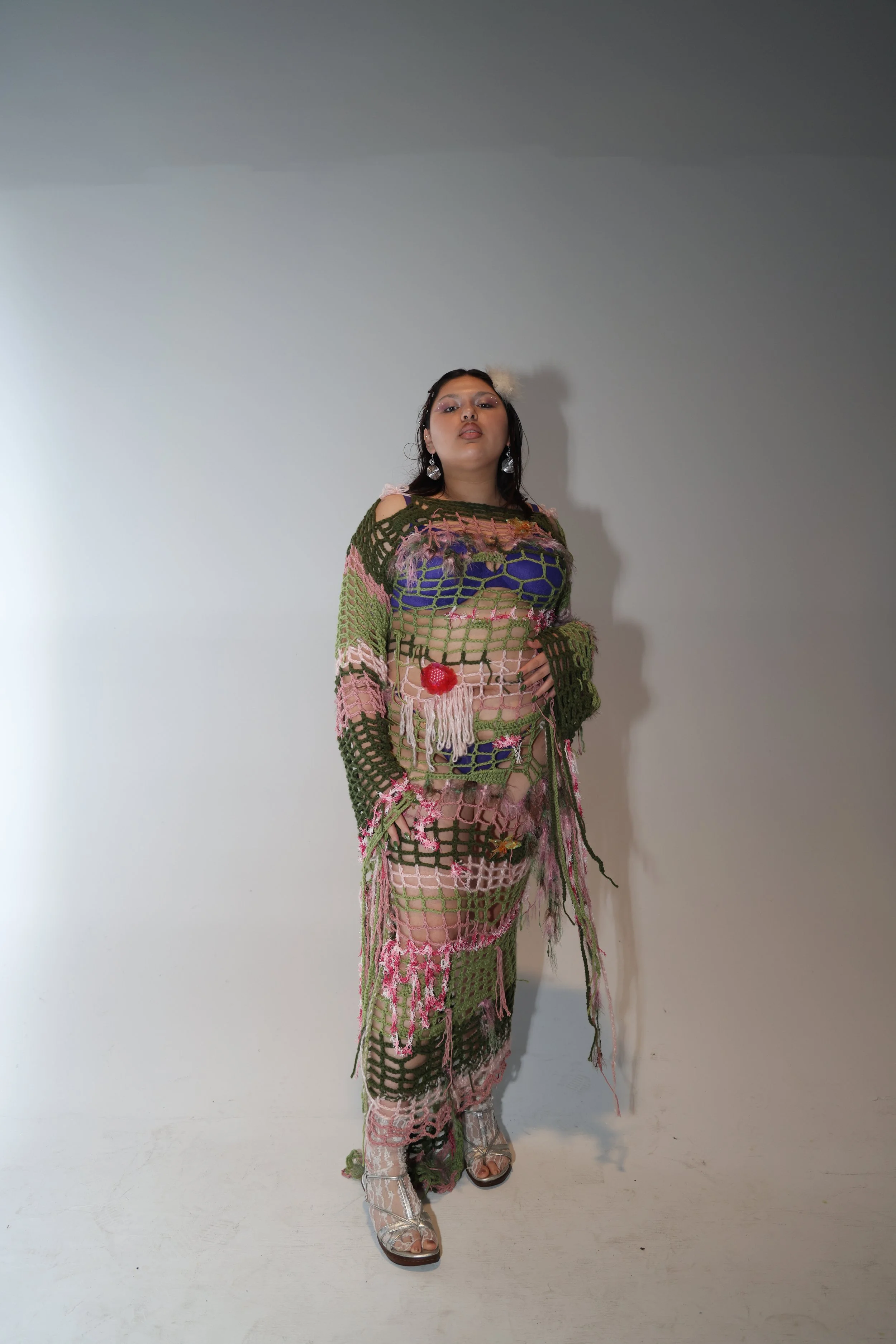Exhibited in New Beginnings fashion show by Nurture Our World; concept created by Alexis Norris; direction and styling by Alexis Norris; crochet designs by Moss; modeled by Alexis Norris, Jade Massel, CodiBrianne Gutierrez, Madelynn Weirda, Illiana Valdez-Ortega, Avery Bolhuis, Madeline Troast, Daevienne Kaiyarath, Annette Leyva-Nuñez, Kristen Taneil, Aylin Ayala; photography by Alister Kruizenga