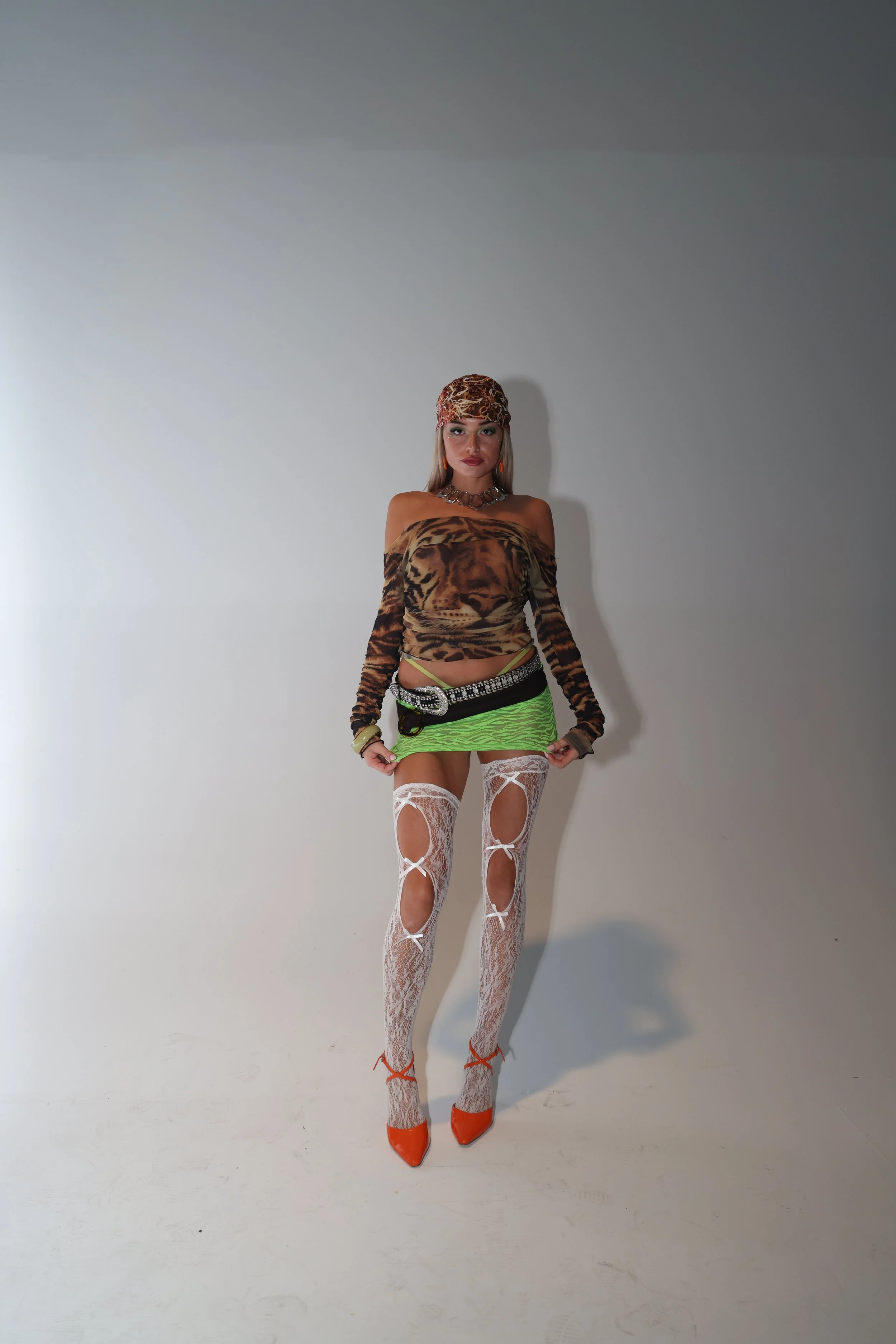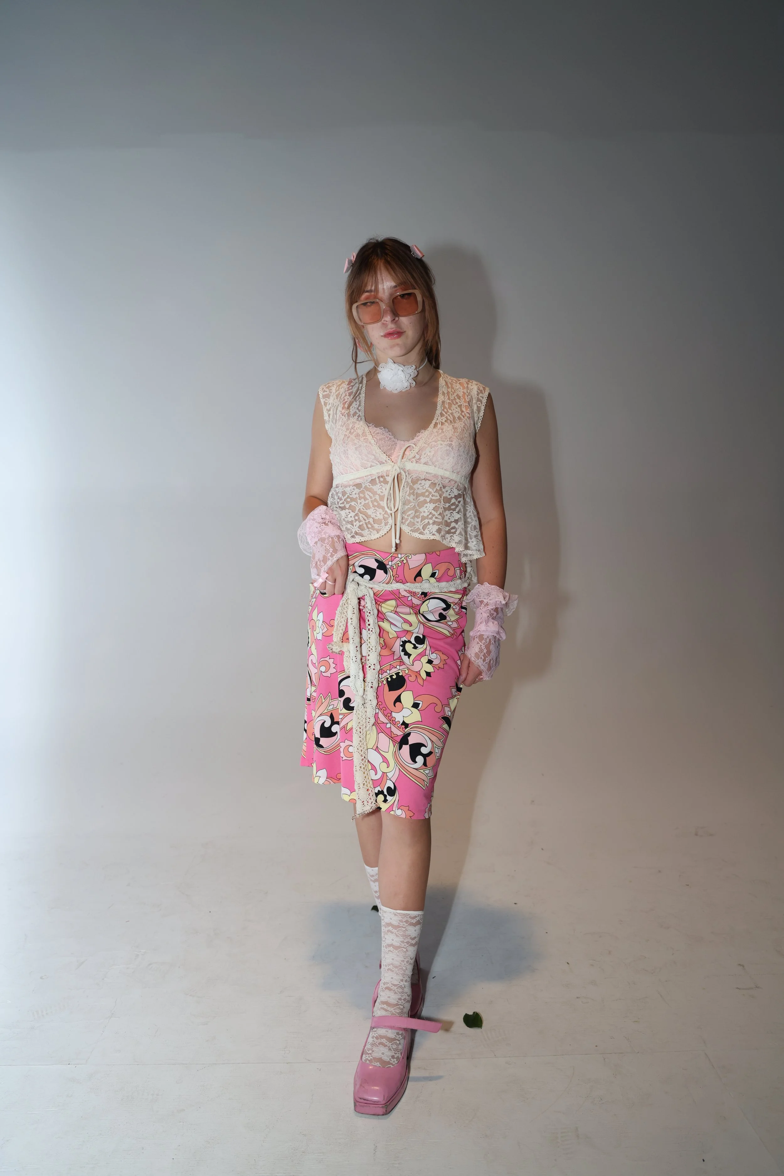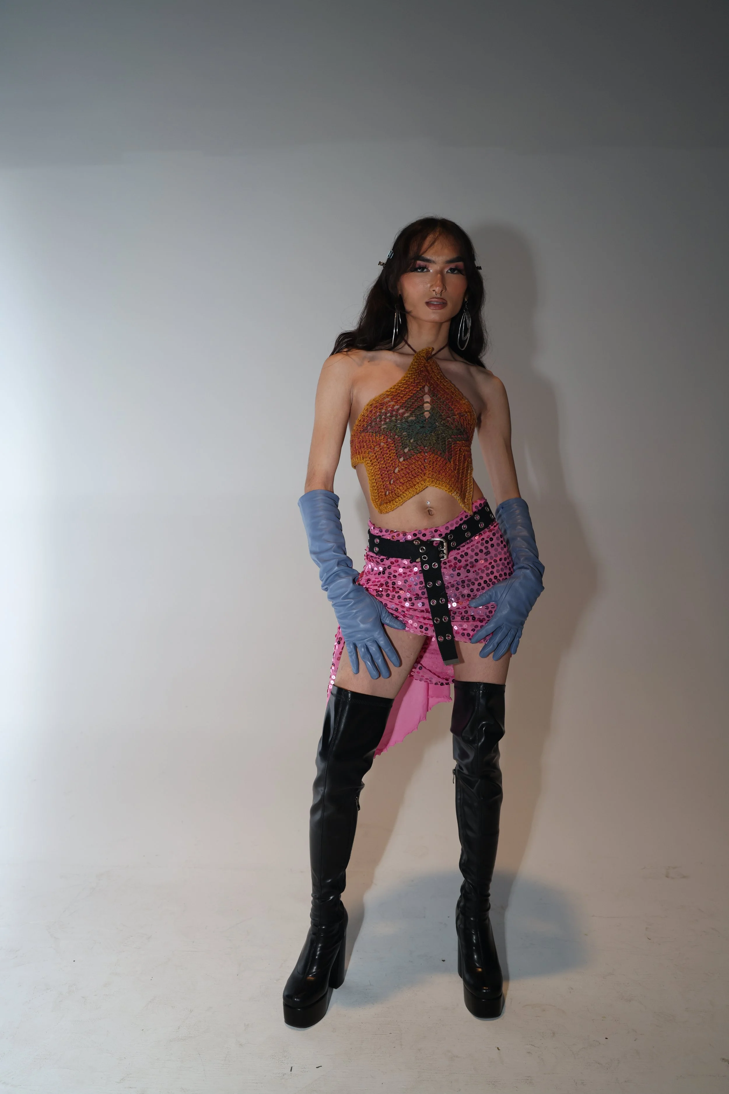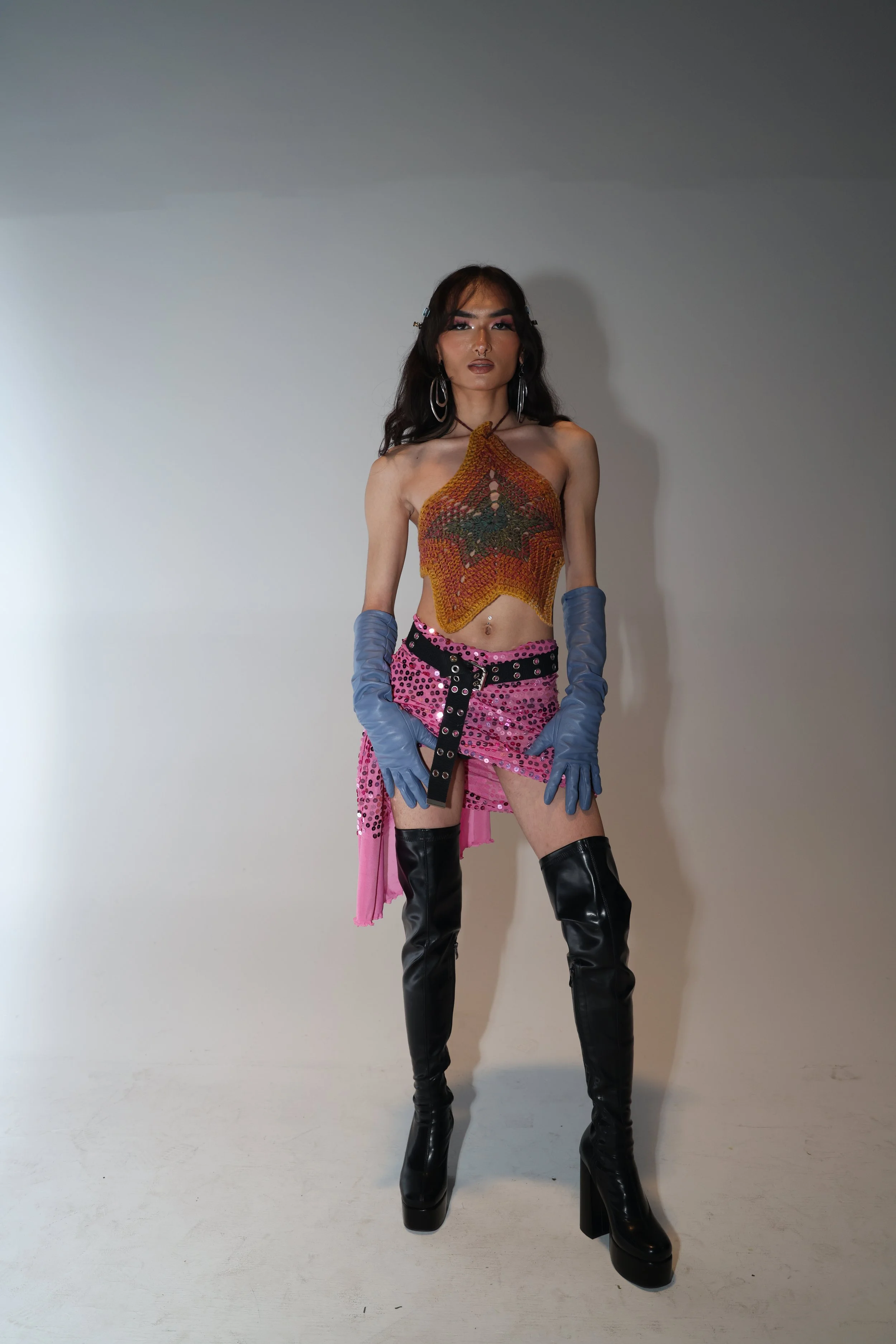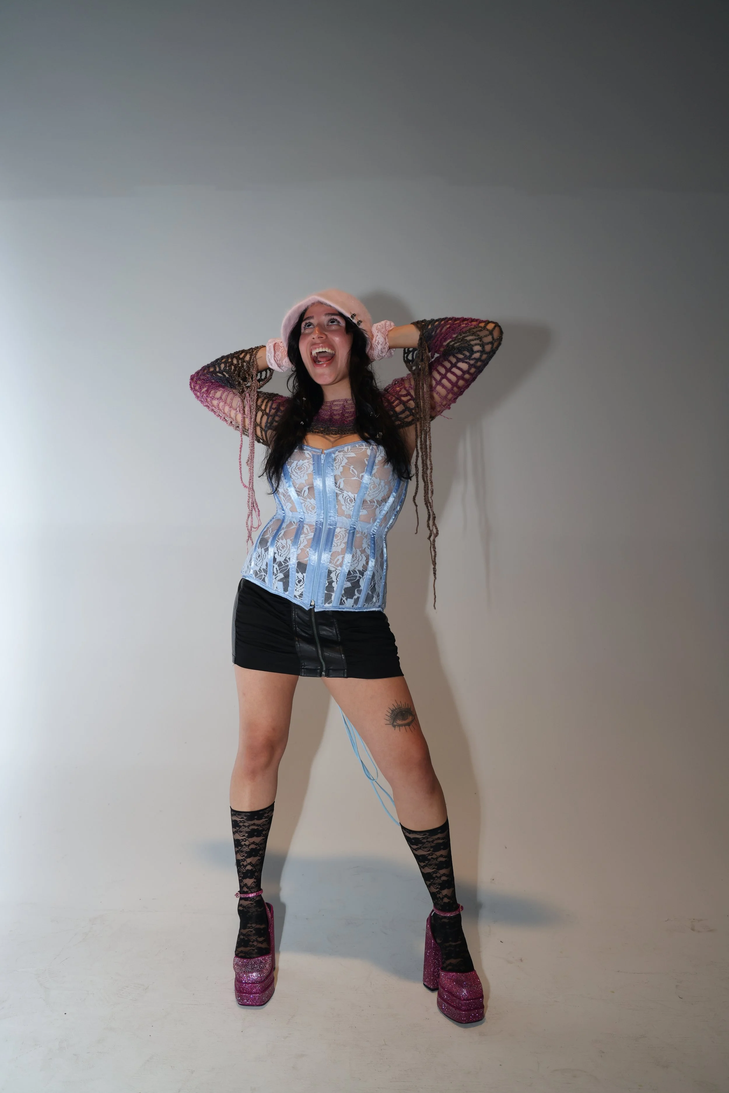 For this runway show, I carried my vision into a new way of exhibition – eclectic styling. I've always adored meshing various textures, silhouettes, colors, etc into collage-esque looks both on myself and clients, and I was excited to take this route to showcase Bare*s message. Wonderfully, Moss, a local midwest artist, allowed me to feature their crochet pieces in my looks. It was a joy to connect with Moss in this way, and I am elated our artistry could be so complimentary.